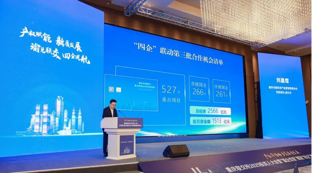 重慶市國資委黨委委員、副主任劉嘉熠現(xiàn)場發(fā)布了“四企”聯(lián)動2025年第三輪合作機會清單,涉及項目527個,總投資額超2500億元,擬引資超1500億元,涵蓋城市開發(fā)、產(chǎn)城融合等多個領域,為投資者提供了豐富的項目資源。