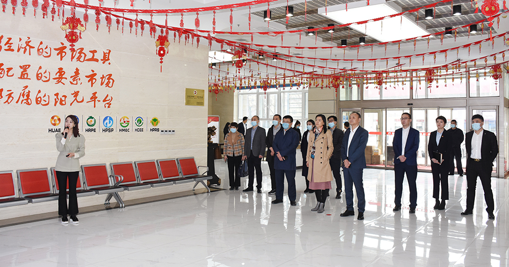 座談前,來(lái)訪客人在集團(tuán)一樓業(yè)務(wù)大廳通過講解員介紹,詳細(xì)了解了交易集團(tuán)發(fā)展情況和各板塊業(yè)務(wù)開展情況。