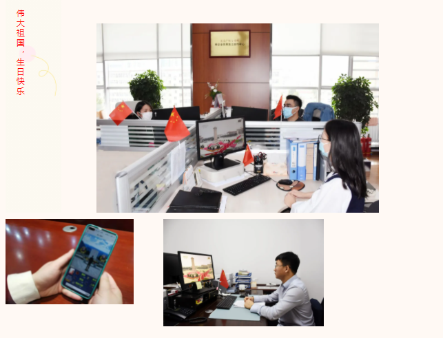 盛世中華,舉國歡慶。交易集團(tuán)員工滿懷無比激動的心情,共同為祖國72華誕送上祝福。大家表示,一定要珍惜來之不易幸福,賡續(xù)紅色基因血脈,立足崗位,發(fā)揮專長,以永無止境的學(xué)習(xí)和敬業(yè)實干的作為,為龍江交易市場建設(shè)發(fā)展貢獻(xiàn)青春力量,共同祝福偉大的黨永葆活力,再創(chuàng)輝煌;祝福偉大的祖國繁榮昌盛,邁向復(fù)興!