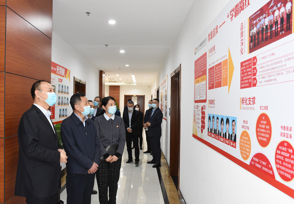 座談前,李忠江一行通過觀看企業(yè)宣傳片和企業(yè)黨建走廊,了解集團板塊發(fā)展和黨建工作情況。
