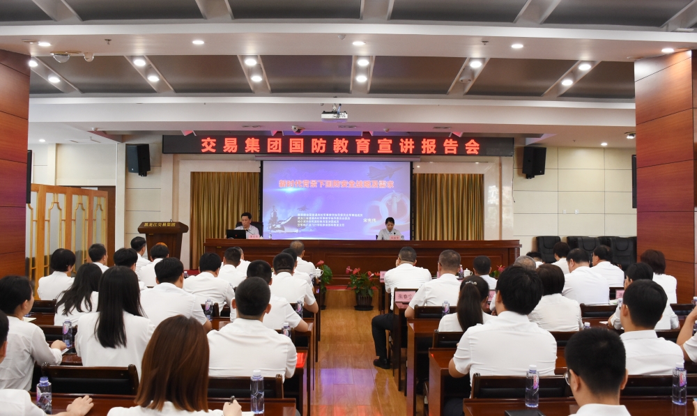 新聞中心 > 集團(tuán)要聞抓經(jīng)濟(jì)不忘固國防,搞建設(shè)不忘興武裝。7月31日,為迎慶中國人民解放軍建軍96周年,深入學(xué)習(xí)貫徹習(xí)近平強(qiáng)軍思想,交易集團(tuán)舉辦國防教育宣講報(bào)告會(huì),加強(qiáng)國防教育,激發(fā)愛國熱情,引領(lǐng)廣大員工把愛黨愛國之志轉(zhuǎn)化為愛崗敬業(yè)、興企有為和推動(dòng)高質(zhì)量發(fā)展的強(qiáng)大動(dòng)力。集團(tuán)黨委副書記、工會(huì)主席付承華主持會(huì)議。集團(tuán)在哈領(lǐng)導(dǎo),集團(tuán)總部及各權(quán)屬企業(yè)員工、全體退役軍人員工參加會(huì)議。