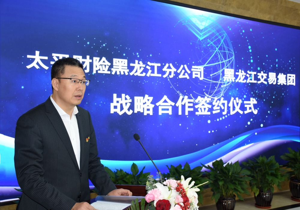 交易集團黨委書記、董事長王立峰,黨委副書記、副董事長、總經(jīng)理夏明禹;太平財險黑龍江分公司黨委書記、總經(jīng)理王立東,哈爾濱銀行行長助理、哈爾濱分行常務副行長孫偉超見證簽約。交易集團副總經(jīng)理單勇,太平財險黑龍江分公司市場總監(jiān)、哈爾濱中心支公司總經(jīng)理丁慧萍分別代表雙方進行簽約。交易集團副總經(jīng)理羅金寶主持簽約儀式。