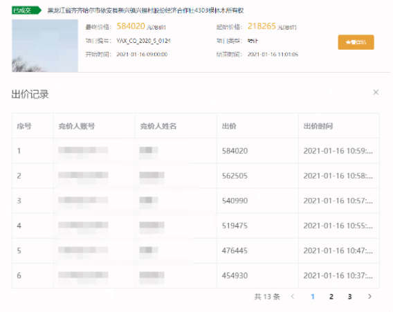 喜報:省農(nóng)村產(chǎn)權(quán)交易平臺依安縣4303棵林木所有權(quán)項目成交 溢價率達(dá)167.6%