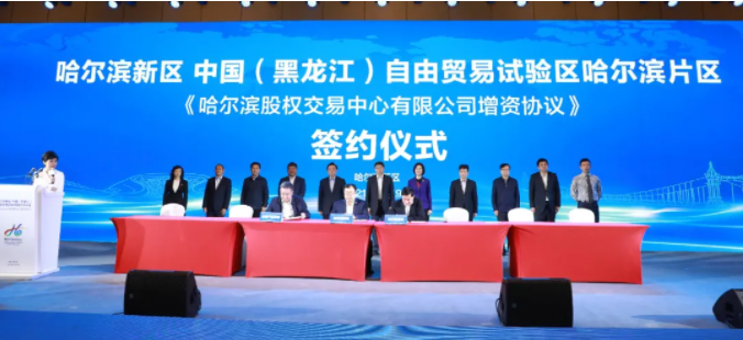 簽約儀式上,交易集團黨委書記、董事長孫光遠代表交易集團與哈爾濱新區(qū)、省新產(chǎn)業(yè)投資集團共同簽署《哈爾濱股權交易中心有限公司增資協(xié)議》,交易集團黨委委員、董秘徐松之參加會議。