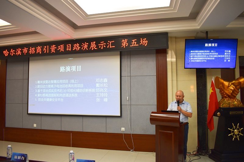 成都瑞達(dá)物聯(lián)科技有限公司的“毫米波雷達(dá)智慧應(yīng)用項目”、哈爾濱工業(yè)大學(xué)的“廢舊動力鋰離子電池回收再利用項目”、哈爾濱拓盟科技有限公司的“基于混合現(xiàn)實技術(shù)的 3D可視化輔助診斷系統(tǒng)”、東北林業(yè)大學(xué)的“紫杉醇高效提取和先進(jìn)遞送系統(tǒng)”以及黑龍江檸檬科技有限公司的“防走失健康安全平臺”等五個項目進(jìn)行了現(xiàn)場展示。