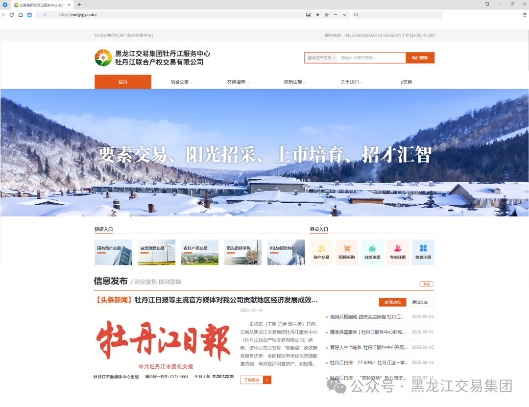 牡丹江聯(lián)合產(chǎn)權(quán)交易有限公司(交易集團牡丹江服務(wù)中心)官網(wǎng),牡丹江陽光交易平臺網(wǎng)站于近日正式上線。作為牡丹江市公共資源交易體系重要組成部分,該網(wǎng)站承載國有資產(chǎn)交易、自然資源交易、陽光招標(biāo)采購等全要素交易展示功能,依托全流程陽光交易系統(tǒng),為牡丹江區(qū)域各類要素合規(guī)高效流轉(zhuǎn)提供技術(shù)服務(wù)支持。