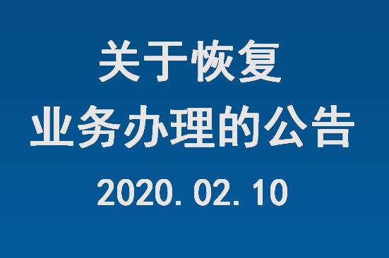 關(guān)于恢復(fù)業(yè)務(wù)辦理的公告