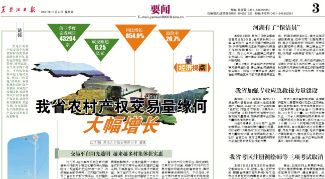 黑龍江日?qǐng)?bào)專題報(bào)道我省農(nóng)村產(chǎn)權(quán)交易量緣何大幅增長(zhǎng)